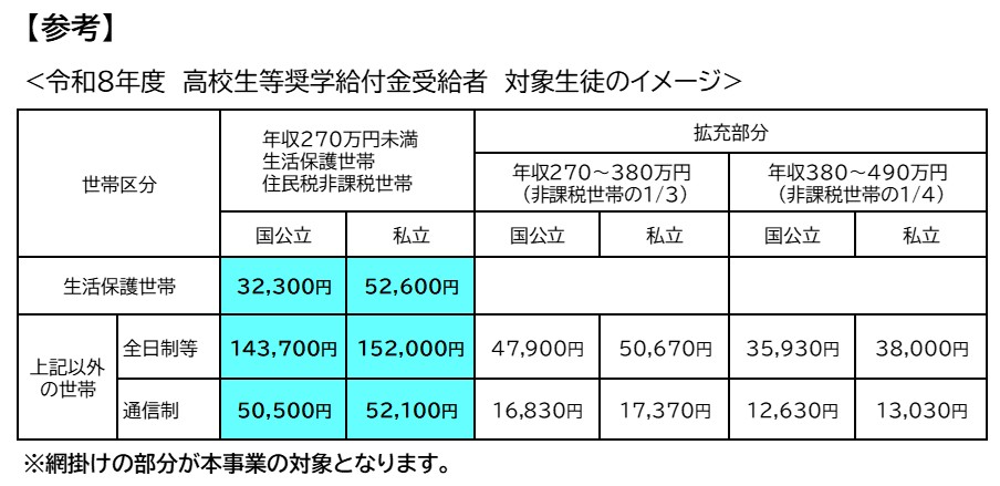 ※ 令和8年度より拡充された年収270万円から490万円の世帯は除きます。 |