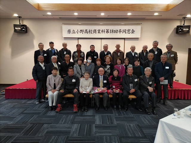卒業50周年を記念し同窓会を開催しました。 芦田先生(1年時)、糟谷先生(2年時)、磯先生(3年時)の3名の先生を お迎えし、男女計35名が集い盛会に催すことが出来ました。 参加者の皆さんからも好評でした。