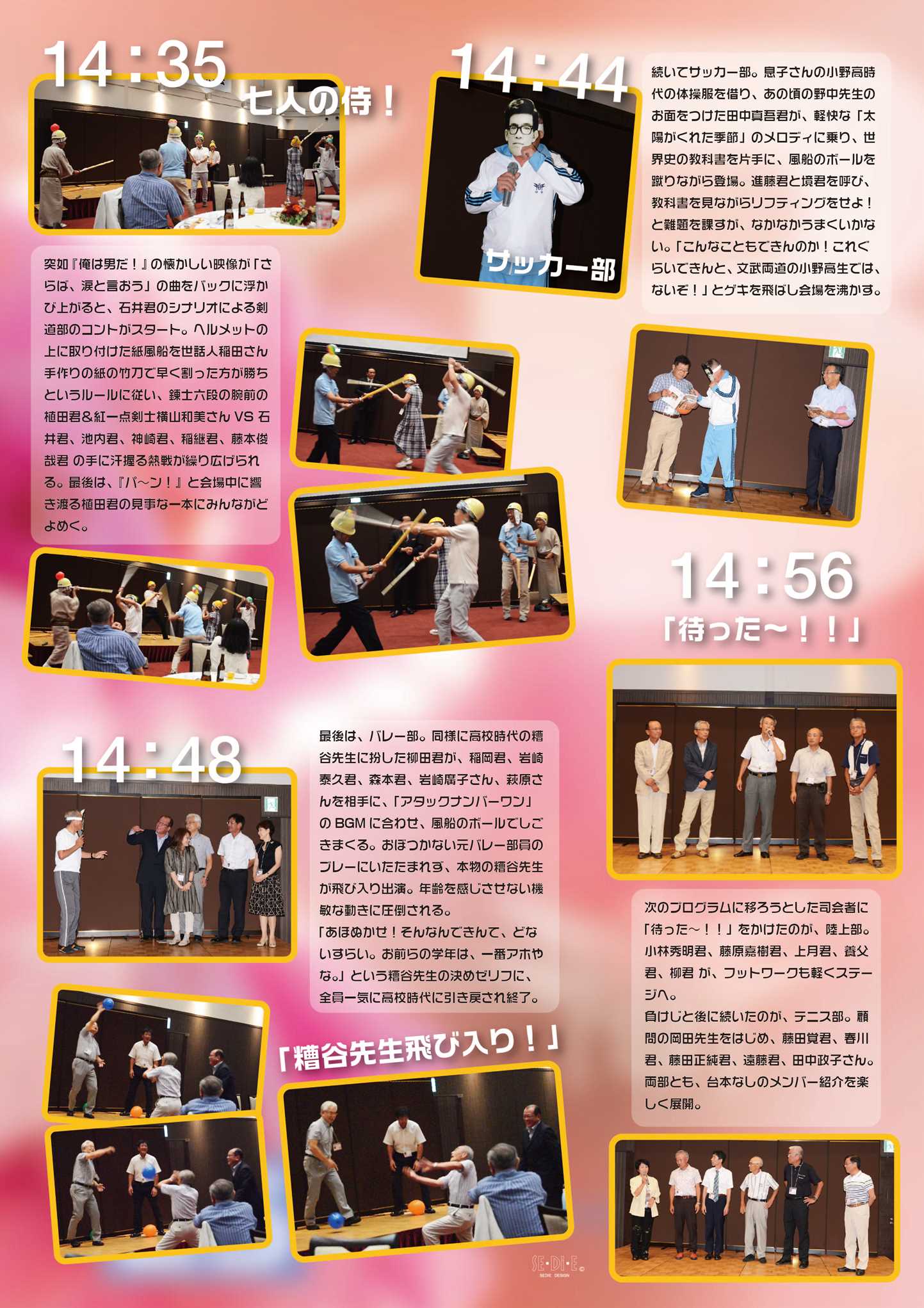 「フラッシュモブライブ」「回転寿司 DE お元気ですか?」「部活コント」「クラスで集合!」「オリジナルデザインのポロシャツ贈呈」「みんなで歌おう!」・・・